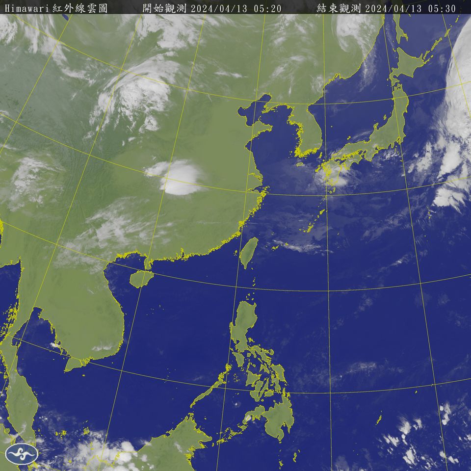 今天(13日)微弱鋒面通過,北部、東北部有零星陣雨、花東地區可能會有雷雨發生機率。