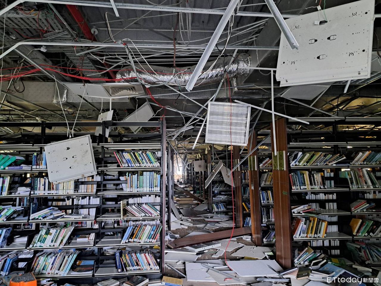 ▲▼位在花蓮的東華大學受強震襲擊,圖書館受創災情嚴重。(圖/東華大學提供,下同)