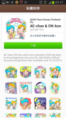 但是都要加入好友才可以下載啦,但是AE-chan&ON-kun只有90天可以使用喔!