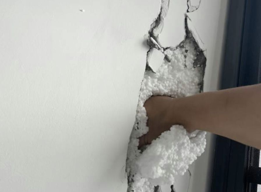 最早發現「泡沫牆」的,是住在24樓的台女士,而牆就在自己孩子的房間。據介紹,2023年11月,她驗收房間的時候發現牆不對勁,結果用力一按,發現中間竟然是空心的泡沫,且經了解後,得知目前至少已經有5戶已經驗收房屋的住戶反映都有泡沫牆的問題。她難過地表示,住在自家屋內,卻連最基本的人身安全保障都沒有,孩子甚至跟她說不敢在房間裏睡覺。