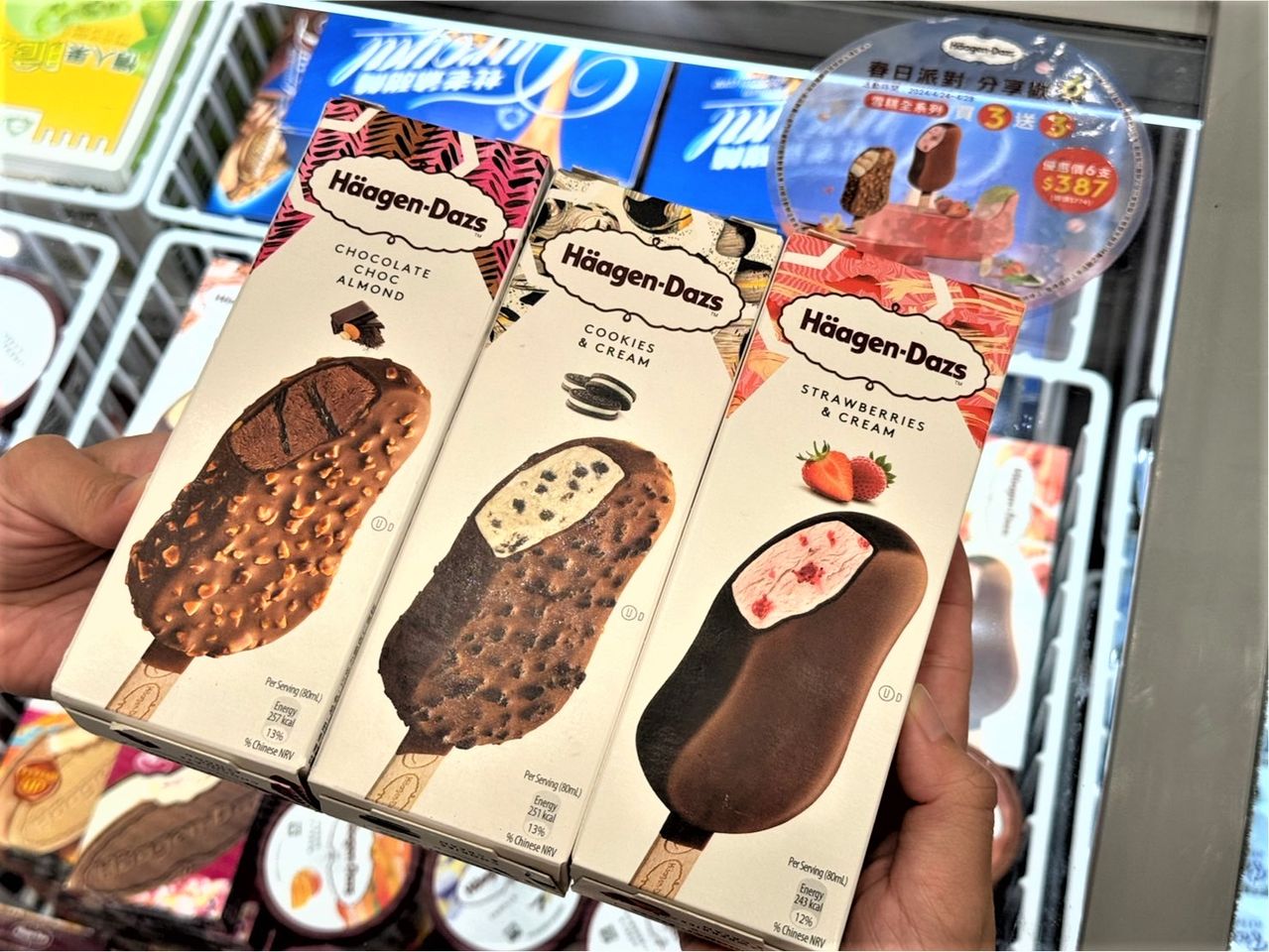 全家即日起至4月28日推出「哈根達斯指定雪糕買3送3」,優惠口味有10款可選,分別為草莓、草莓抹茶、檸檬抹茶、香草焦糖脆杏仁、巧克力脆杏仁、淇淋巧酥、抹茶杏仁粒、花生醬、芒果覆盆子及草莓覆盆子馬卡龍。