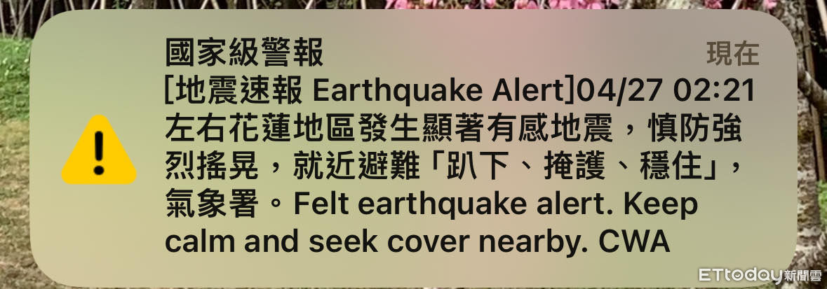 台灣27日凌晨2時21分發生有感地震,台北有感搖晃,時間持續約11秒,各地詳細震度將待氣象署進一步報告。