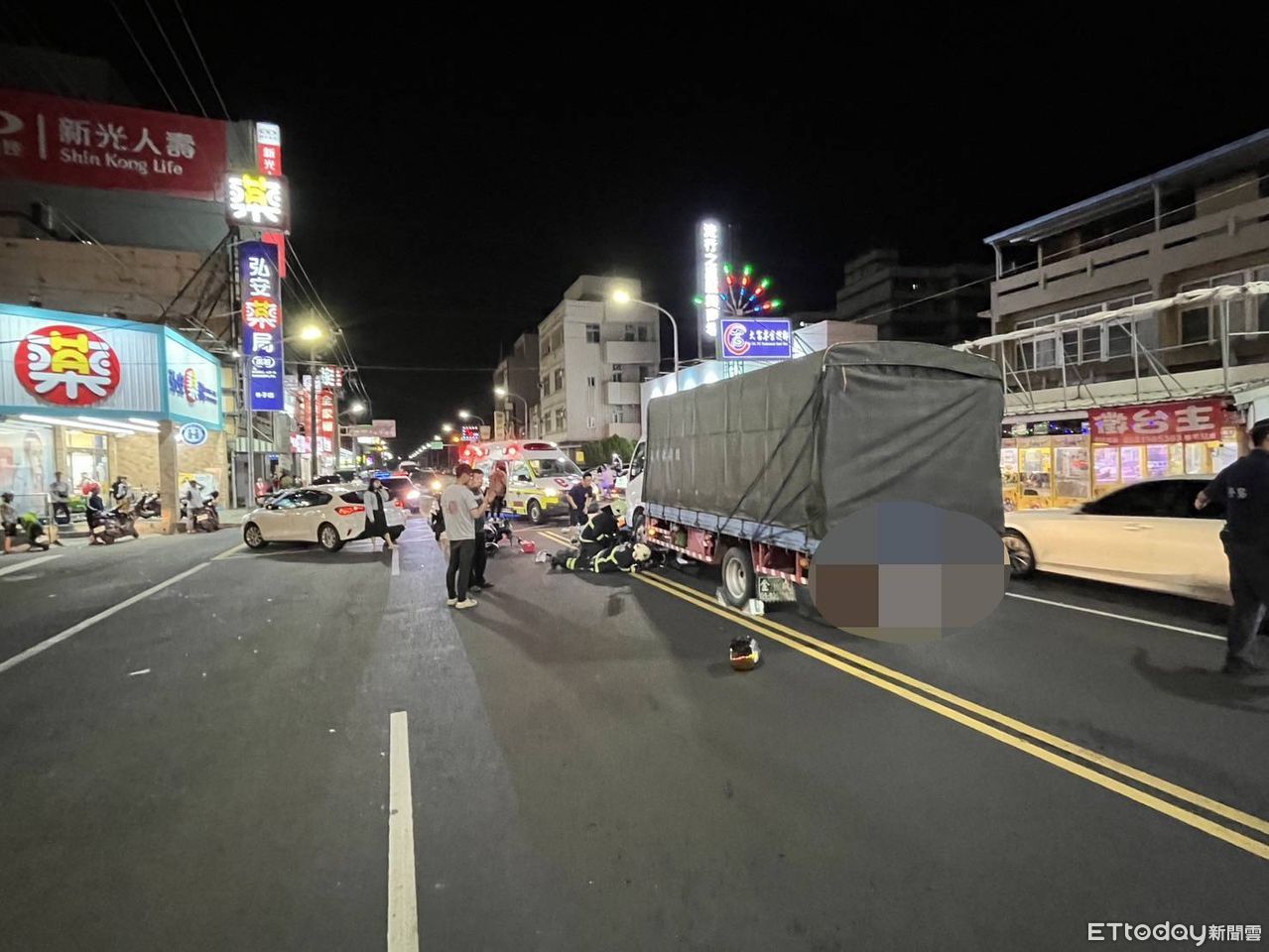 ▲嘉義雙載機車撞違規轎車,後座女大生遭貨車輾斃。(圖/記者翁伊森翻攝,下同)
