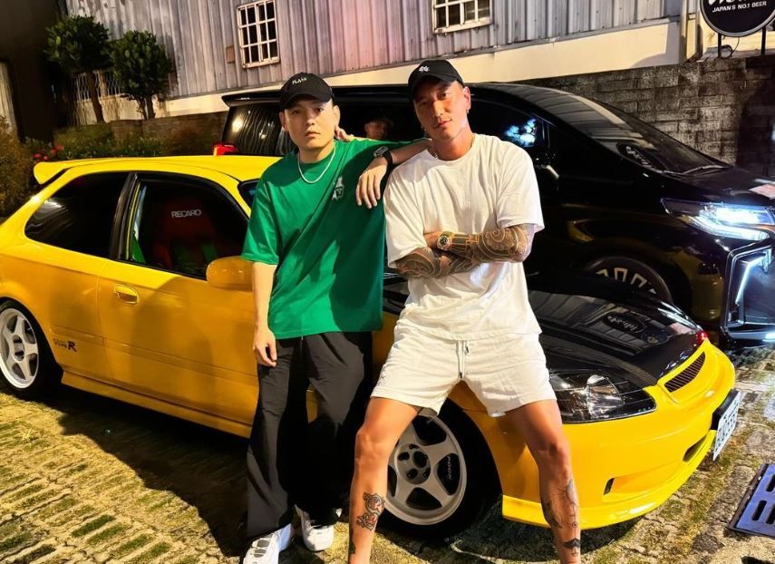 ▲▼春風(左)不只一次在IG上發過該車,看得出對車輛相當照顧,還曾跟藝人王陽明(右)開心在車前合影。(圖/翻攝春風IG)