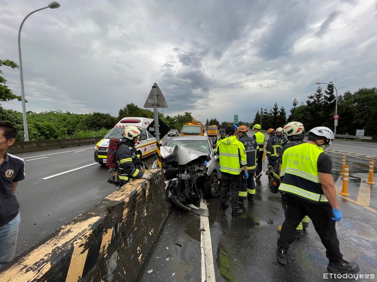 ▲安坑交流道自撞車禍,3歲女童意識不清送醫 。(圖/記者陳以昇翻攝)
