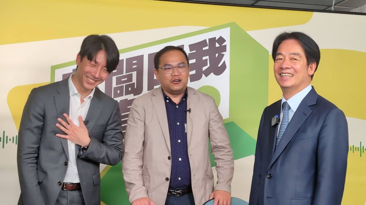 ▲賴清德(右)昨晚「突襲檢查」吳崢(左)和王義川(中)的直播成效。(圖/民進黨提供)
