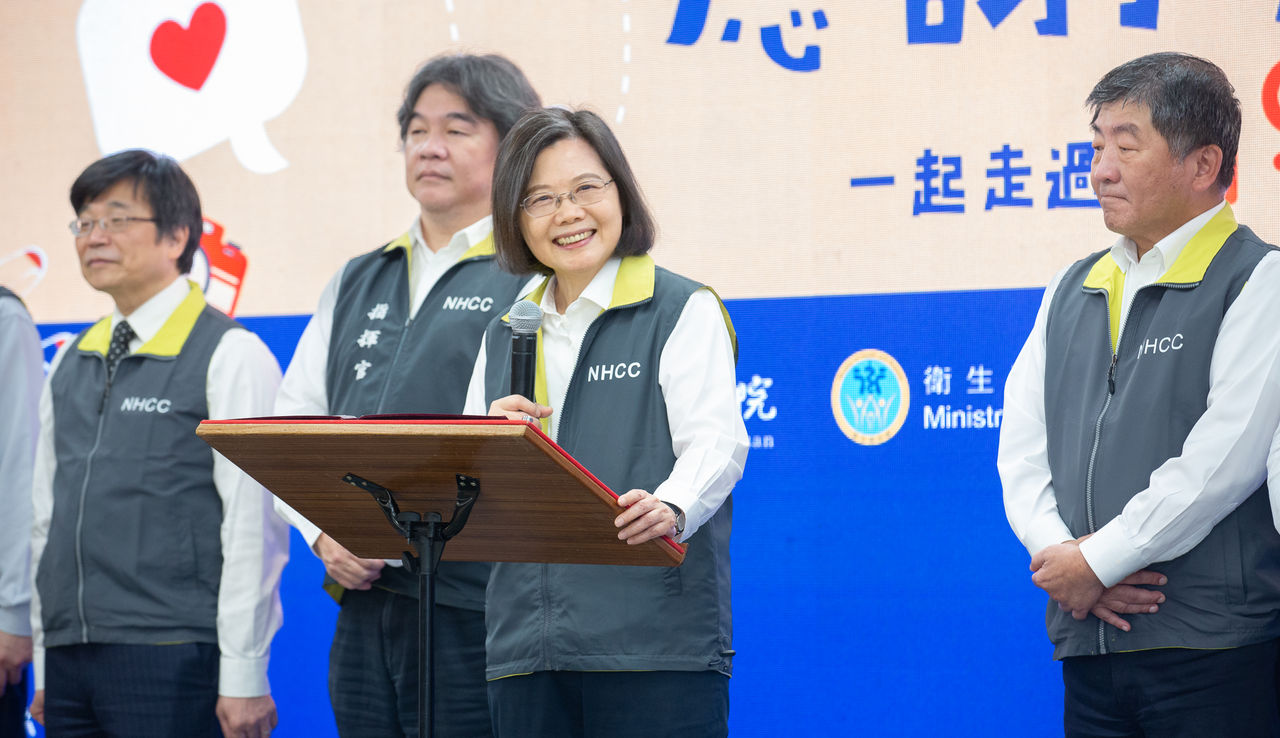 ▲指揮中心解編滿一年,圖為去年指揮中心終場記者會,蔡英文總統前往慰勉。(圖/總統府提供)
