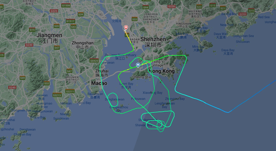 飛常準APP顯示,4月30日的CX341次航班原定於16時50分從上海虹橋機場起飛,19時30分抵達香港機場;但最終航班於當天19時10分才起飛,5月1日凌晨2時42分在香港落地。航行軌跡顯示,這趟飛機在香港上空盤旋數周後備降深圳,後來重新起飛到香港降落。