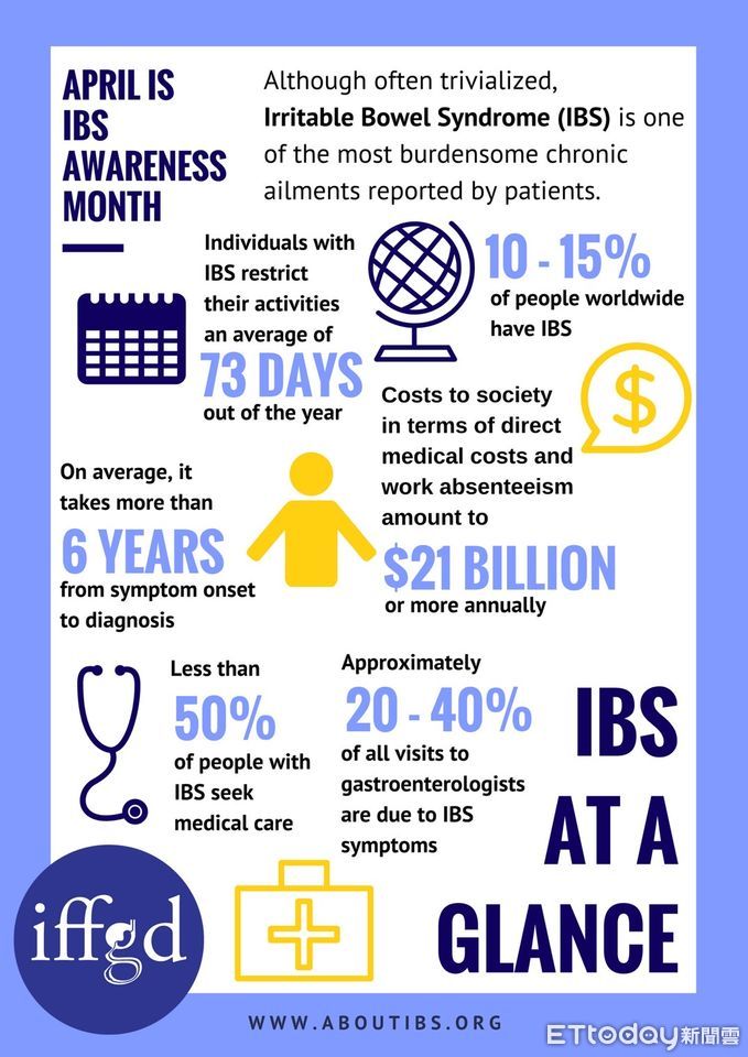 ▲國際胃腸道疾病基金會將每年4月,定做大腸激躁症警示月,呼籲全球民眾共同關心。
