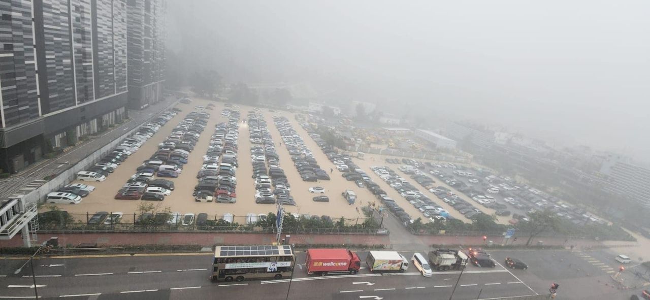 ▲香港暴雨,將軍澳一處停車場嚴重積水。(圖/翻攝facebook「馬路的事」Bosco Chu圖片)