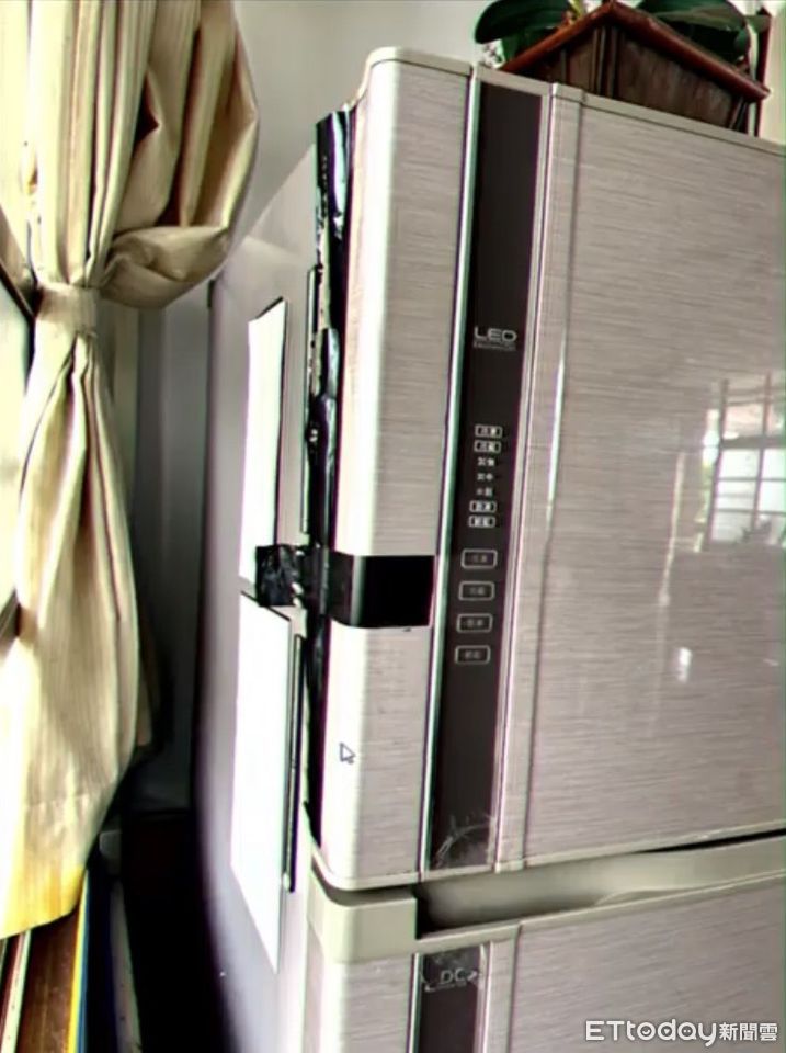 ▲ 嘉義縣議員甚至加碼校長打包營養午餐,滿到冰箱關不上,必須用膠帶綁冰箱 。(圖/記者翁伊森翻攝)