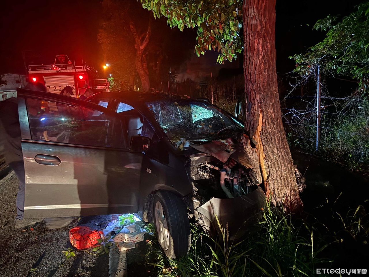 這起事故發生在今天凌晨1時許,一名26歲女駕駛開車行經事故路段時,不明原因自撞路樹,造成車上共1男4女受傷。