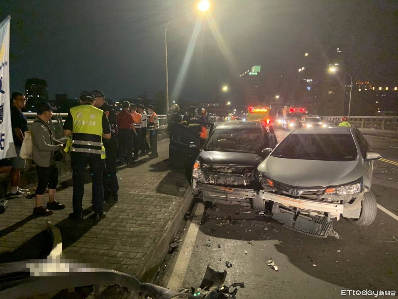 台北市成美橋昨(4日)晚間20點25分發生3車碰撞車禍意外,造成4人受傷,經調查為蘇姓男子酒駕,撞上對向車道王姓女子駕駛的自小客車,再波及後方由彭姓男子駕駛的營業小客車;肇事蘇姓駕駛,警方依違反道路交通管理處罰條例製單舉發及吊扣牌照,訊後依涉嫌違反刑法公共危險罪移送偵辦。