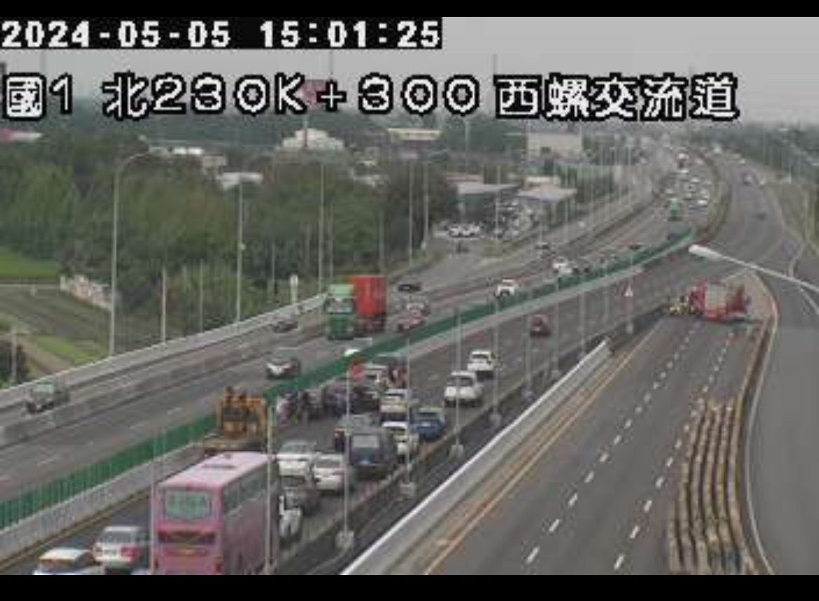 ▲國道一號西螺交流道多車連環撞。(圖/翻攝高速公路1968)
