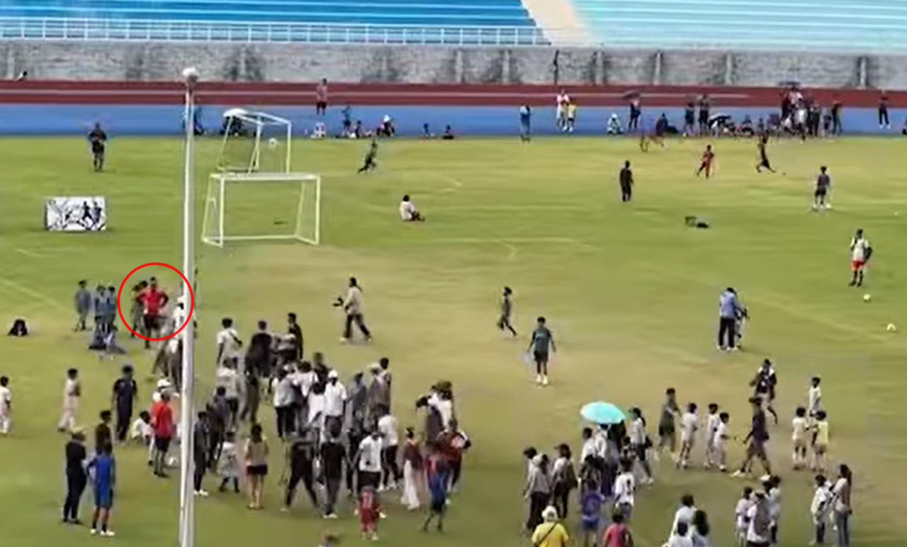 ▲球員(紅圈處)犯規將對手推出界,結果意外引發混戰。(圖/翻攝自Goat勁運動教室臉書,下同)