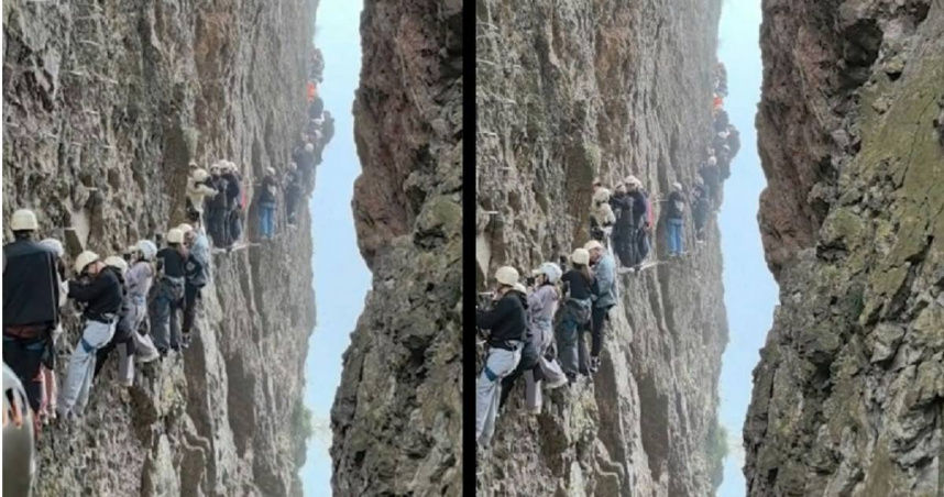 據《香港01》報導,鐵道攀登的C路線因為遊客數量太多,攀岩者一個個卡在半路上,遭遇上下左右動彈不得,腳下又是萬丈深淵的恐怖處境。有遊客驚恐回憶,很多人一困就是1個多小時,加上還有小孩在體驗攀岩,擔心隨時會有危險情況,有些人甚至嚇到哭了出來。