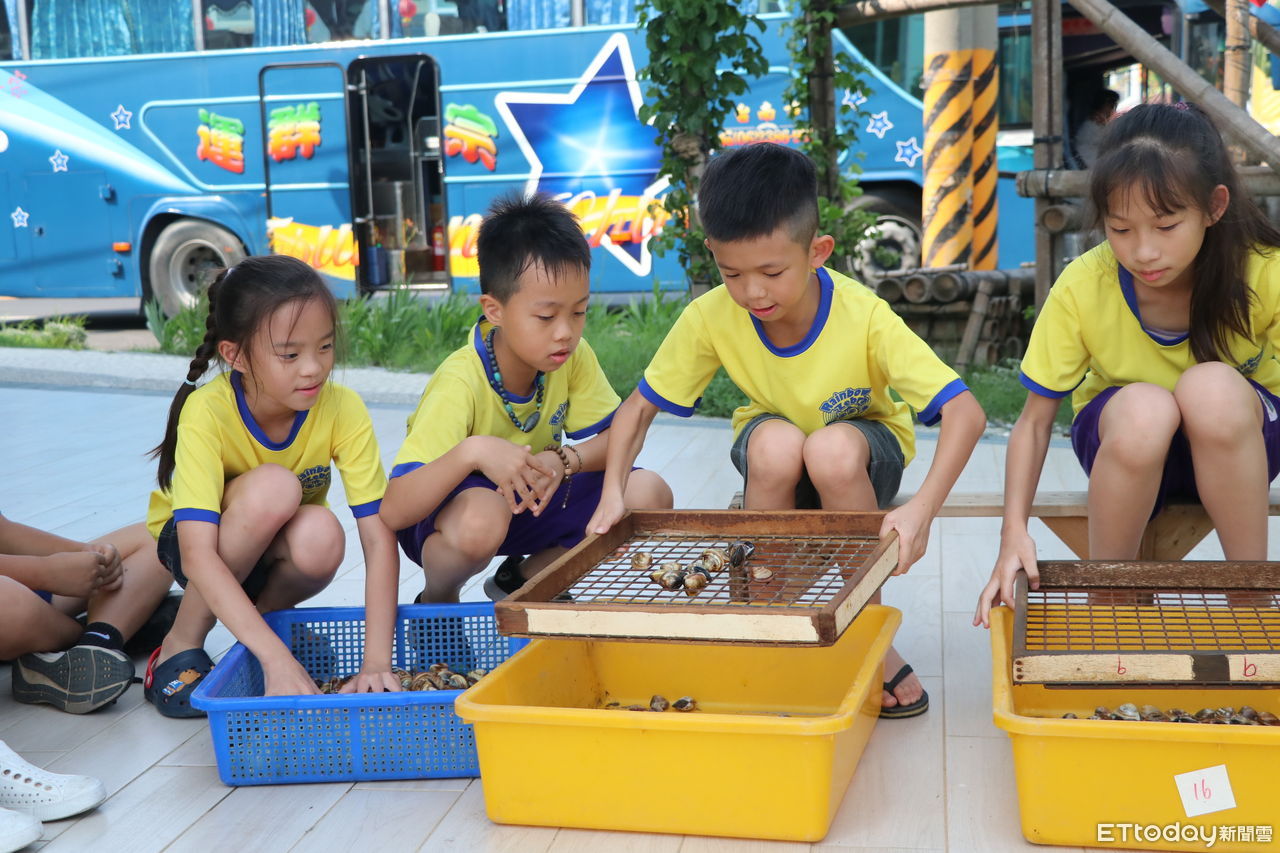 南大附小彩虹斑馬團隊執行教育部戶外教育計畫,師生前往雲林口湖、嘉義布袋探索文蛤的一生,在文蛤教父曾明村指導下,學童看到體積小到跟細砂一樣大,俗稱黑砂的文蛤苗,從採收、篩選、打粒、算粒、秤斤皆能近距離學習;接著到布袋好美里文蛤養殖池,利用格狀篩網將文蛤進行分級,學童直呼文蛤課程太好玩了!