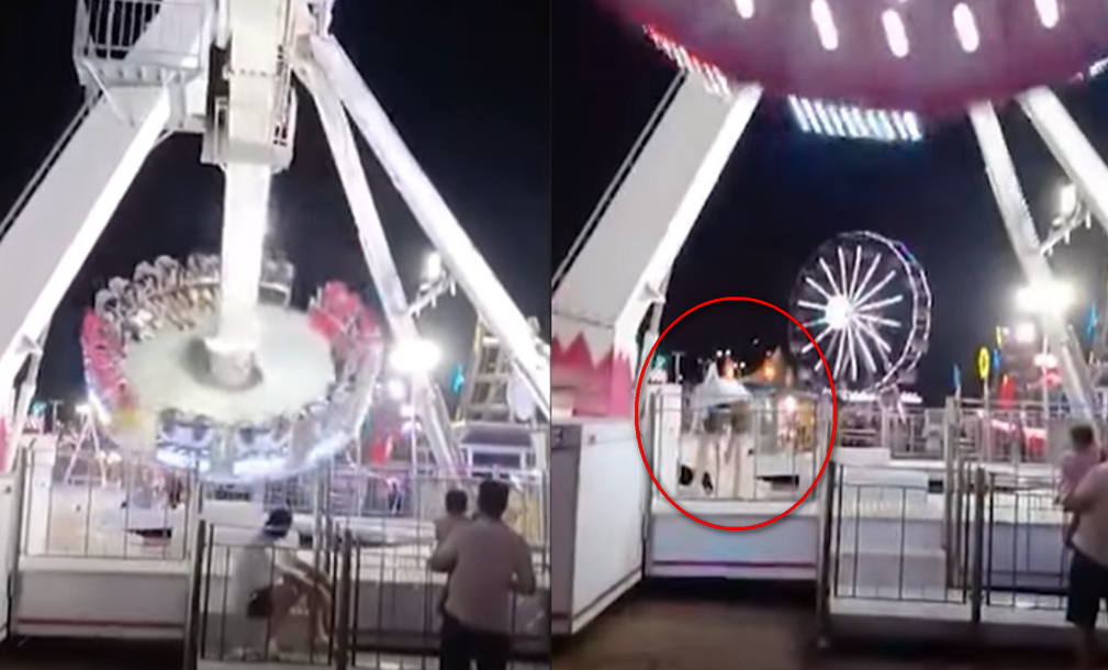 男子發現小狗後,立即衝進遊樂設施平台上救狗,然而小狗不肯配合乖乖離開,導致360度轉動中的遊樂設施返回平台時來不及閃避,當場被狠狠撞上背部,整個人幾乎被壓在擺錘底下。
