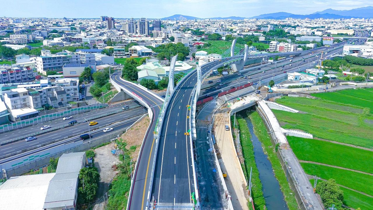高公局指出,該工程計畫總經費62.6億元,施工期間遭遇疫情、缺工缺料以及自來水管線、天然氣管線遷移等施工障礙,施工團隊除調整施工優先順序外,為了降低橋梁施工作業對用路人的影響,採用大跨度脊背橋及頂昇橫移工法施作跨越國道1號的橋梁,並大量利用夜間離峰時進行交維改道施工,終能克服困難提前通車。