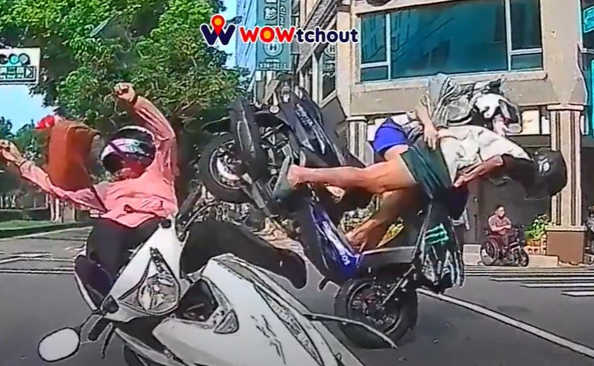 高雄市苓雅區昨(8日)發生一起車禍,一名田姓女騎士遭闖紅燈的蘇姓騎士撞上,導致2名騎士、1名後座乘客被撞飛倒地,3人全身都有多處擦挫傷,被送往醫院治療。