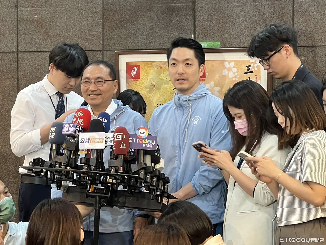 蔣萬安、新北市長侯友宜9日上午出席2025雙北世壯運吉祥物記者會,會後接受媒體訪問。針對張榮興被拍到與角頭相約吃魚翅,且陳永德也在內,要如何處理此事?蔣萬安表示,警察局有跟他回報,並在新聞稿對外說明,「我想一切就是依法規定,該怎麼處理,就怎麼處理。」