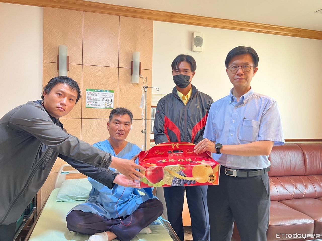 ▲▼交通警察大隊大隊長黃元民與義交鹽埕中隊幹部們,前往醫院慰問受傷的義交人員。(圖/記者吳世龍翻攝)