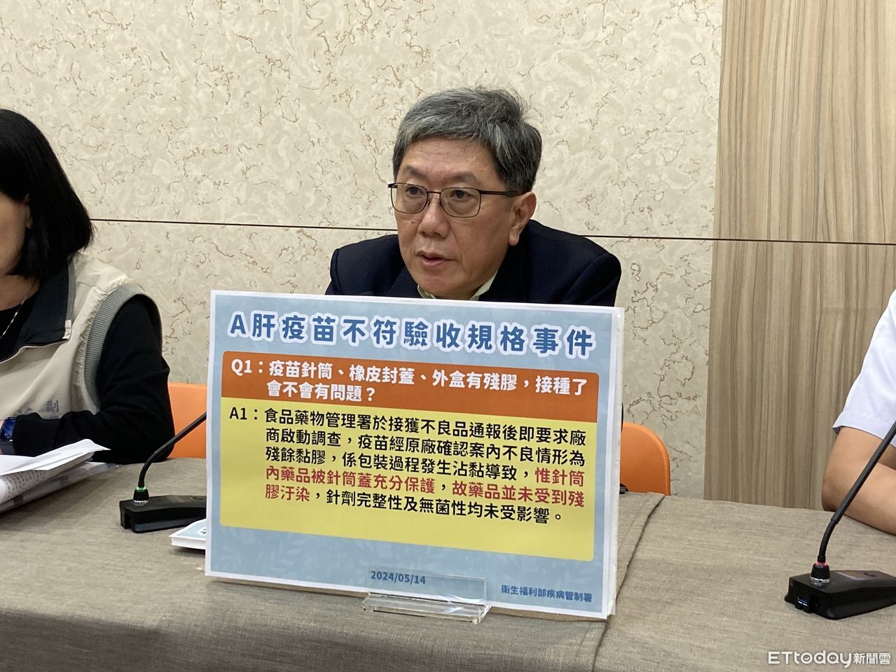 ▲衛福部傳染病防治諮詢會預防接種組(ACIP) 李秉穎召集人說明A肝疫苗不符驗收規格一事。(圖/記者洪巧藍攝)