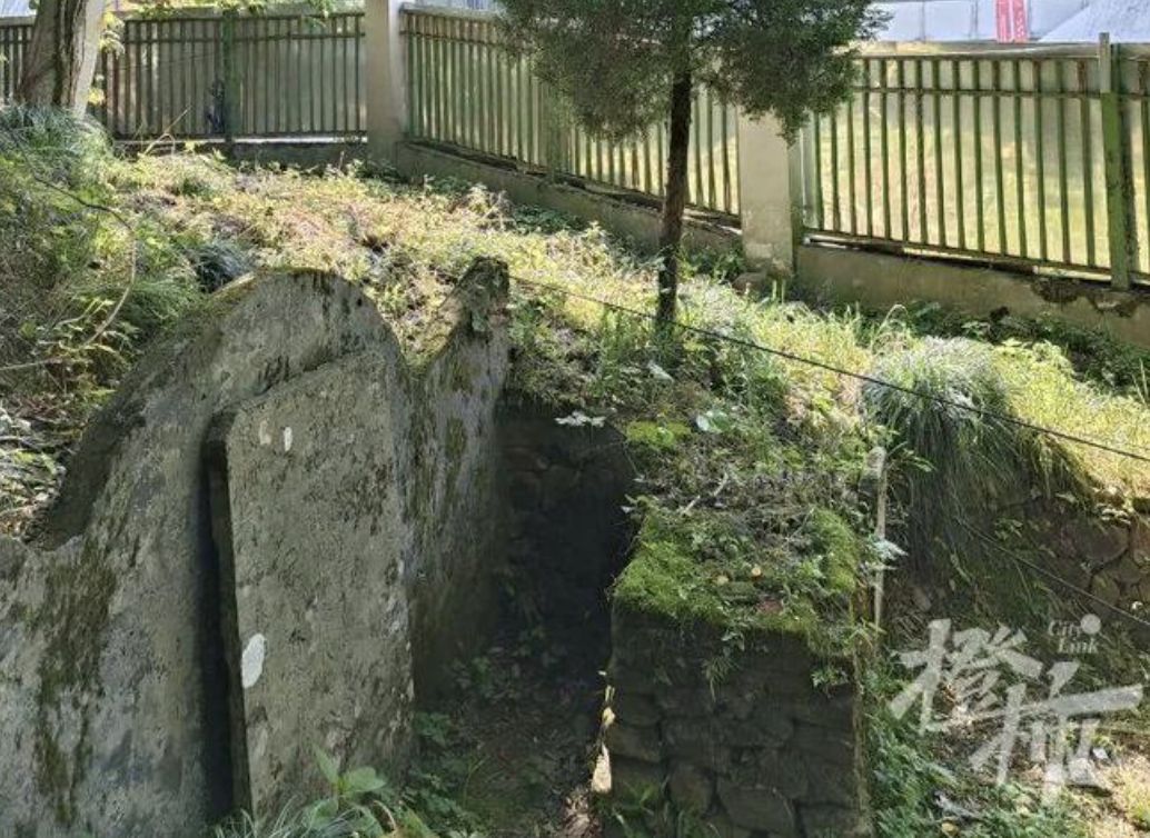 據了解,這座古墓位於浙江科技大學「學生活動中心旁」的圍牆處,由於墓地規模不小,學校的圍牆還在此處繞道,墓地旁的圍牆柵欄有掛上假草坪遮擋,路人經過時很難發現此處有塊墓地。