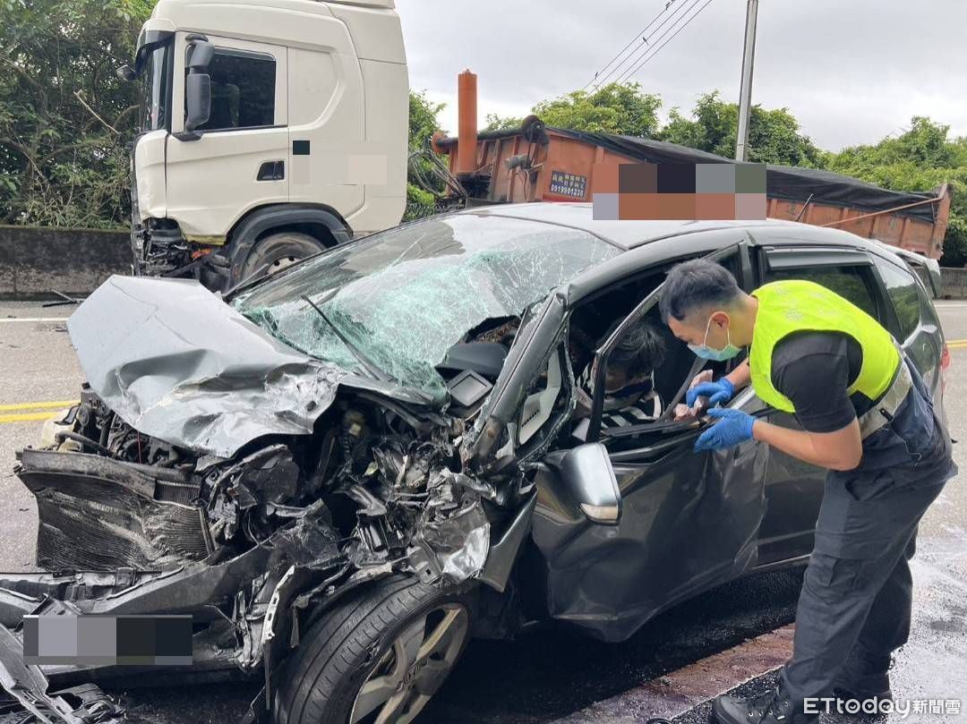 ▲新北市貢寮區聯結車、自小客車車禍。(圖/記者郭世賢翻攝,下同)