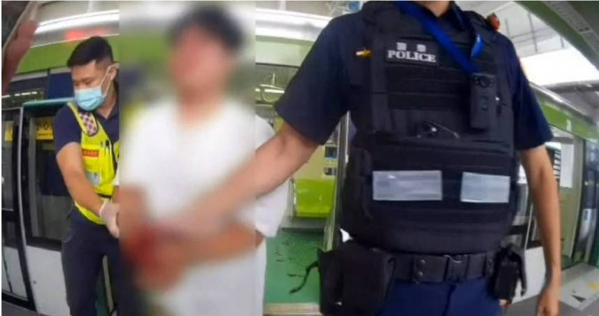 ▲洪姓男子在中捷車廂內發狂揮砍乘客,導致2人受傷送醫。(圖/翻攝自記者爆料網)