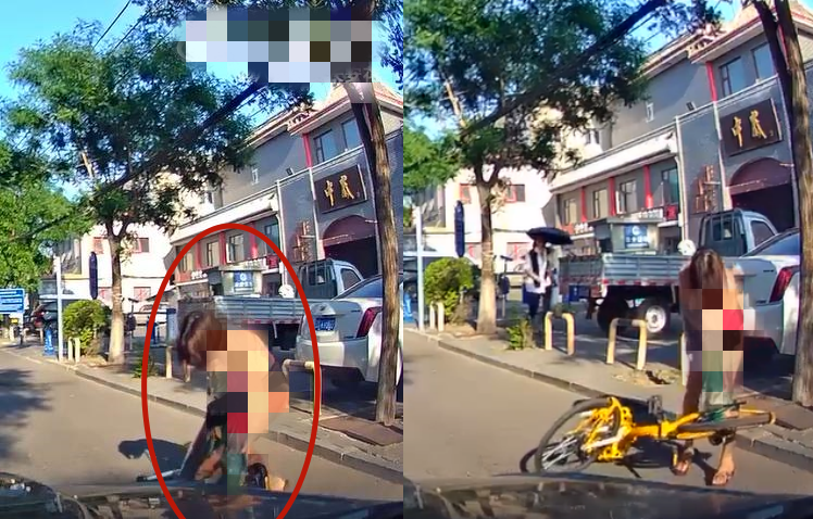 據微博帳號「八目共賞長安花」23日發影片稱,「穿長裙騎單車一定要小心,一不小心就衣衫盡褪了…。」