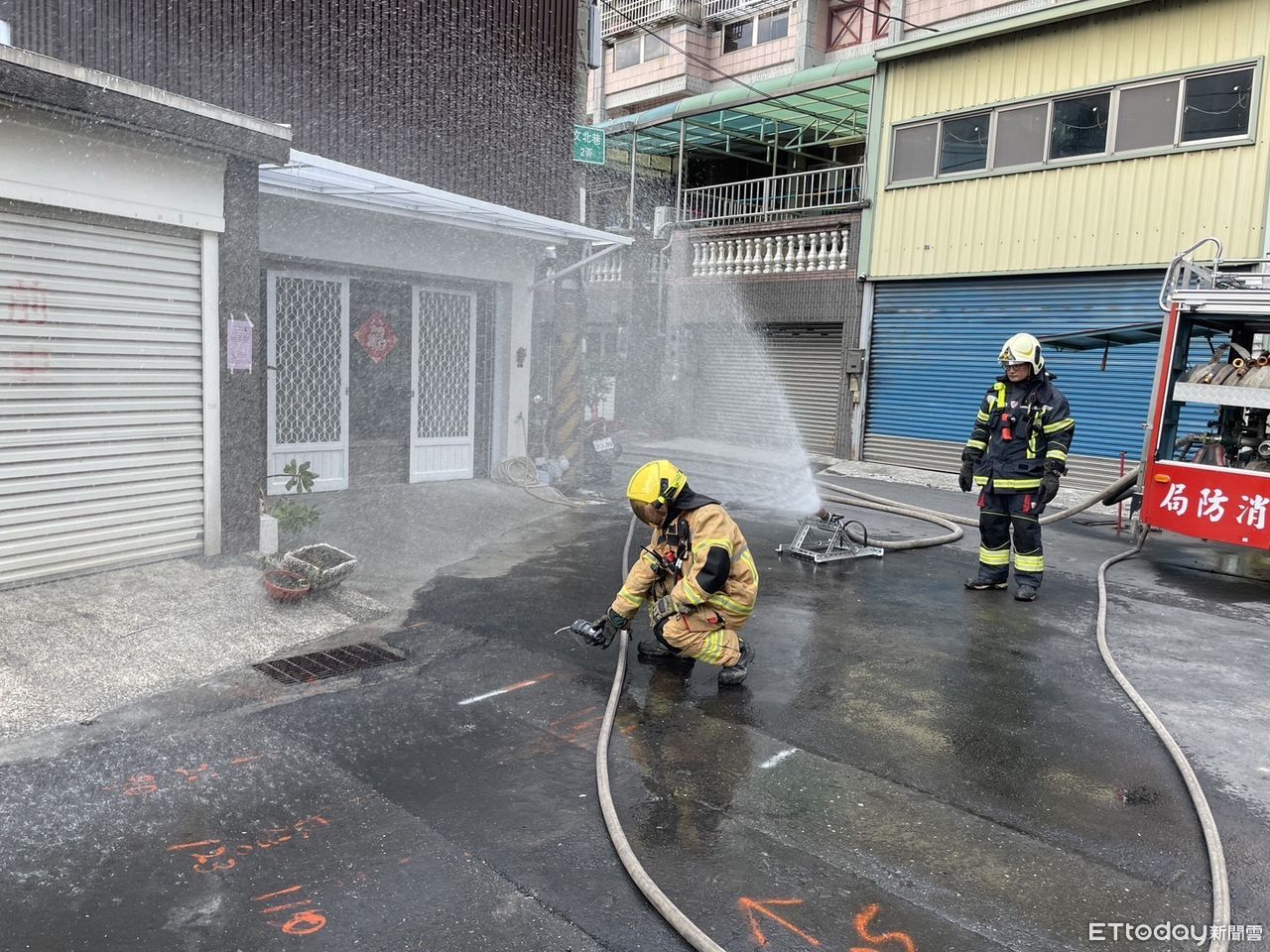 ▲高雄鳥松驚傳「瓦斯外洩」,消防出動灑水警戒。(圖/記者賴文萱翻攝)