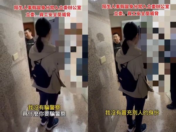 當管理人員上前錄影蒐證並詢問身分時,女方始終不敢露臉,以手上的紙板遮住臉,先聲稱自己是公報處職員,又改口為媒體底下的直播助理。期間,有立院的人出面釐清男女身分,但因聲音較大,反而被嗆「你在大聲什麼啦」。