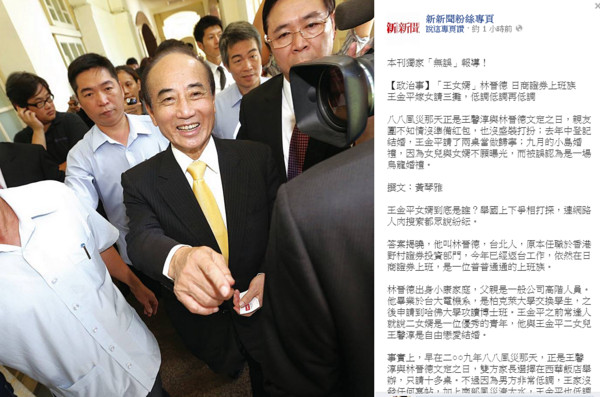 ▲強調無誤獨爆!《新新聞》:王金平女婿是日商證券上班族林晉德。(圖/翻攝《新新聞》粉絲團)