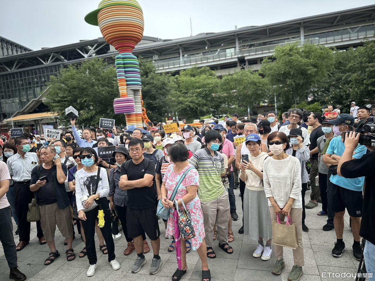 ▲全台串連「我藐視國會」,台中飄雨,但台中車站前廣場仍有500人聚集。(圖/記者白珈陽攝,下同)