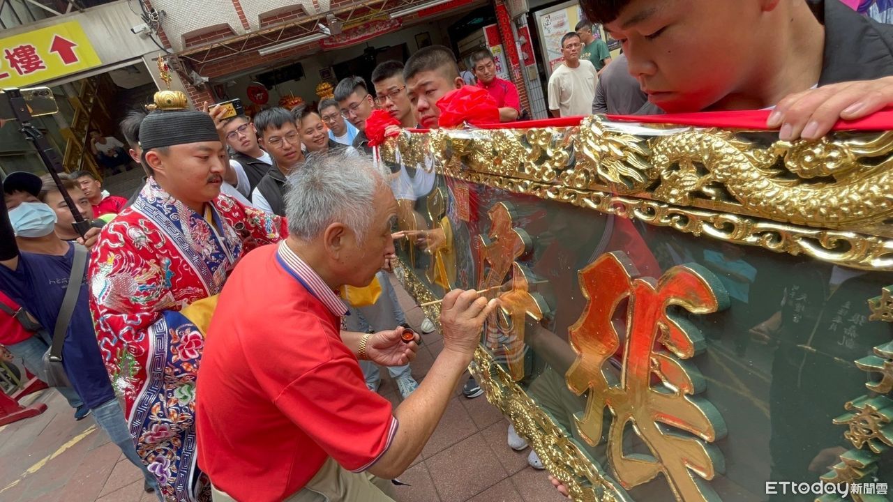 ▲玉皇宮主任委員涂大松以硃砂點匾。(圖/記者林東良翻攝,下同)