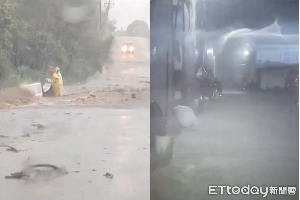受鋒面影響,中央氣象署也針對蘭嶼發出豪雨特報,蘭嶼從前天就不時下暴雨,各地傳出災情,只見蘭嶼港灣波濤洶湧,大浪打向停靠岸邊的拼板舟,路旁也不斷湧出夾帶黃色泥沙的滾滾洪水,路面遭土石流淹沒,讓人車難以通行,更有機車險被沖走。