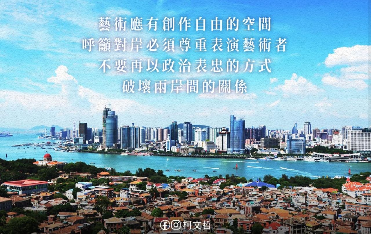 民眾黨主席柯文哲今天透過臉書表示,藝術應有創作自由的空間,對岸必須尊重表演藝術者,不要再以政治表忠的方式,破壞兩岸間的關係,被迫「交作業」的表態,換來的不是尊重,而是厭惡感。