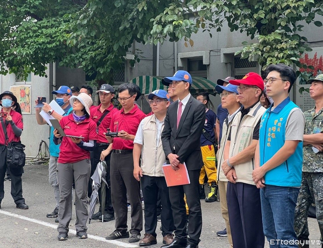 ▲台南市葉澤山副市長、尤天厚副秘書長、消防局李明峯局長一行視導演習實況。(圖/記者林東良翻攝,下同)