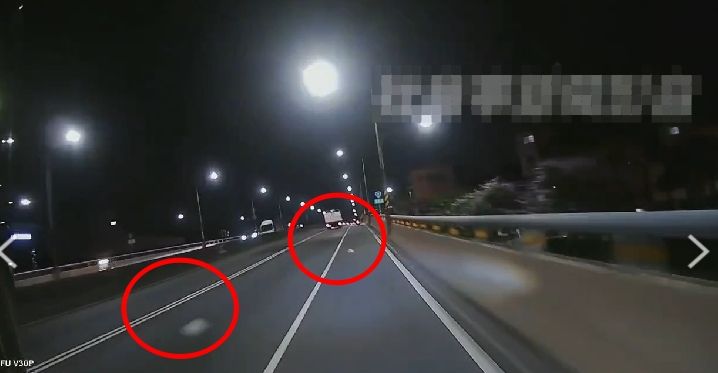 ▲▼回收車沿路飄出塑膠袋,後方騎士被擊中。(圖/翻攝自社會事新聞影音)