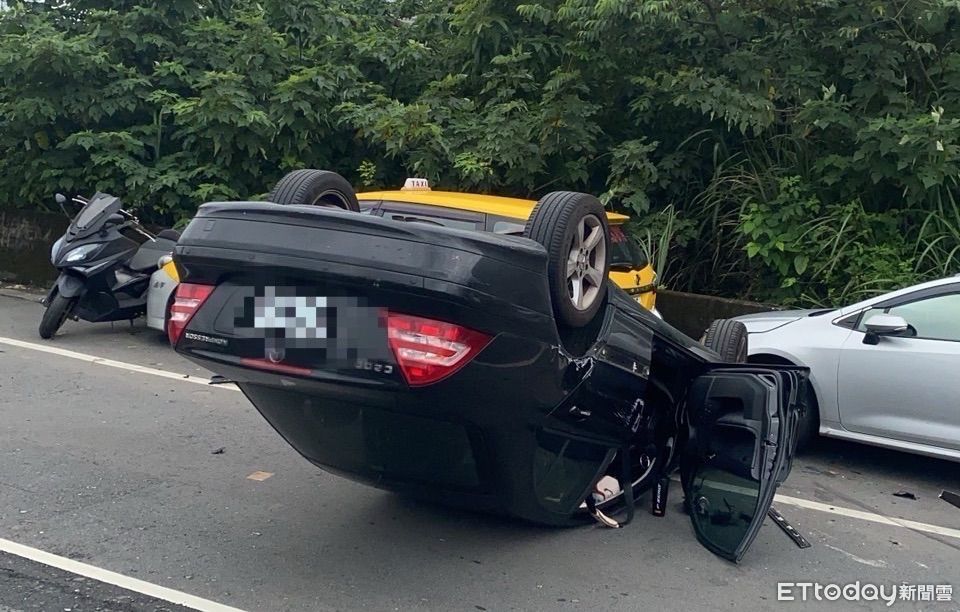 據悉,38歲鄭姓男子是賓士車維修廠員工,29日上午8時許,他開著客戶維修保養好的賓士車,要返回北市文山區營業處,沒想到行經新北市深坑區文山路一段時,鄭低頭要撿拾掉落的保溫瓶,車子不慎失控,連續擦撞停在路邊的計程車及小客車,賓士車擦撞後當場翻覆四輪朝天。