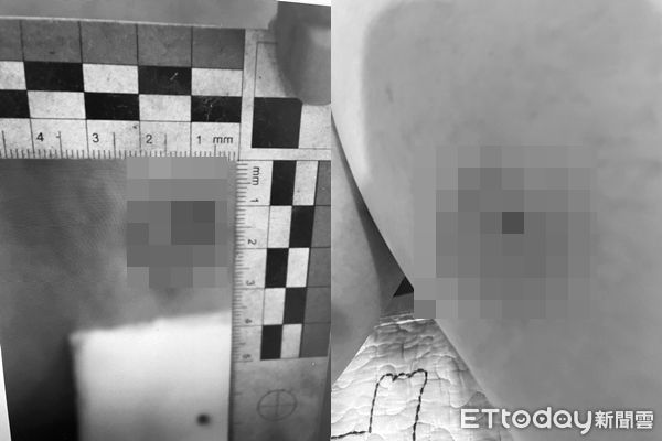 警方調查,女子27日下班回家,行經北投捷運站附近時,突然聽到「啵」一聲,接著感覺大腿刺痛,當下並未察覺異狀。豈料回家脫下長褲後,發現腿上有個圓形傷口,還有滲血、瘀青等狀況。