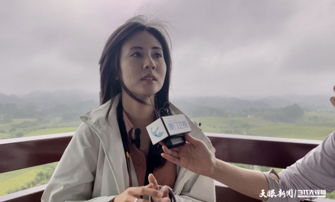 台青梁以柔興奮表示,「這是我第一次看到這麼大的茶園,真的就像海一樣,無邊無際的,感覺聞到了縷縷茶香味!」何橞瑢則指出,這裡的茶海好像看不見盡頭一樣連綿不斷,場景會很美很震撼,「剛好今天有一點飄著細雨,感覺特別浪漫。」