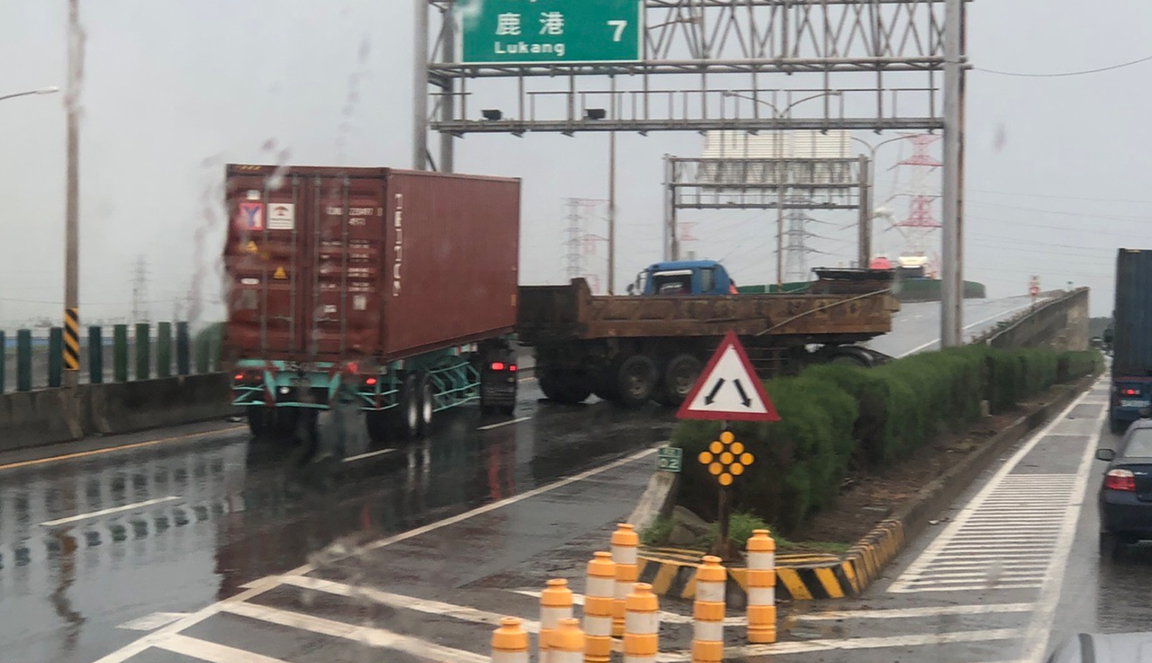 台61線南下170.4公里,今(1)日中午12時許發生車禍事故,一輛貨櫃車與一輛砂石車擦撞,事故封閉南下車道,目前警方趕到場處理無人受傷,詳細事故原因仍待調查釐清。