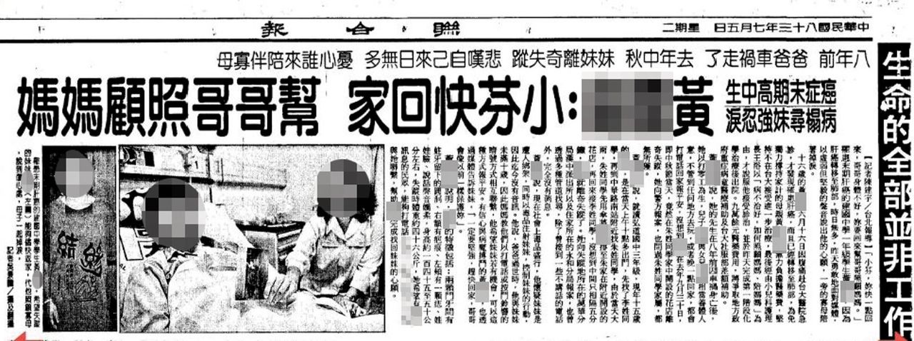 ▲當年癌末哥哥尋妹的新聞曝光後,「尋找小芬」成為全民運動。(翻攝《聯合報》)