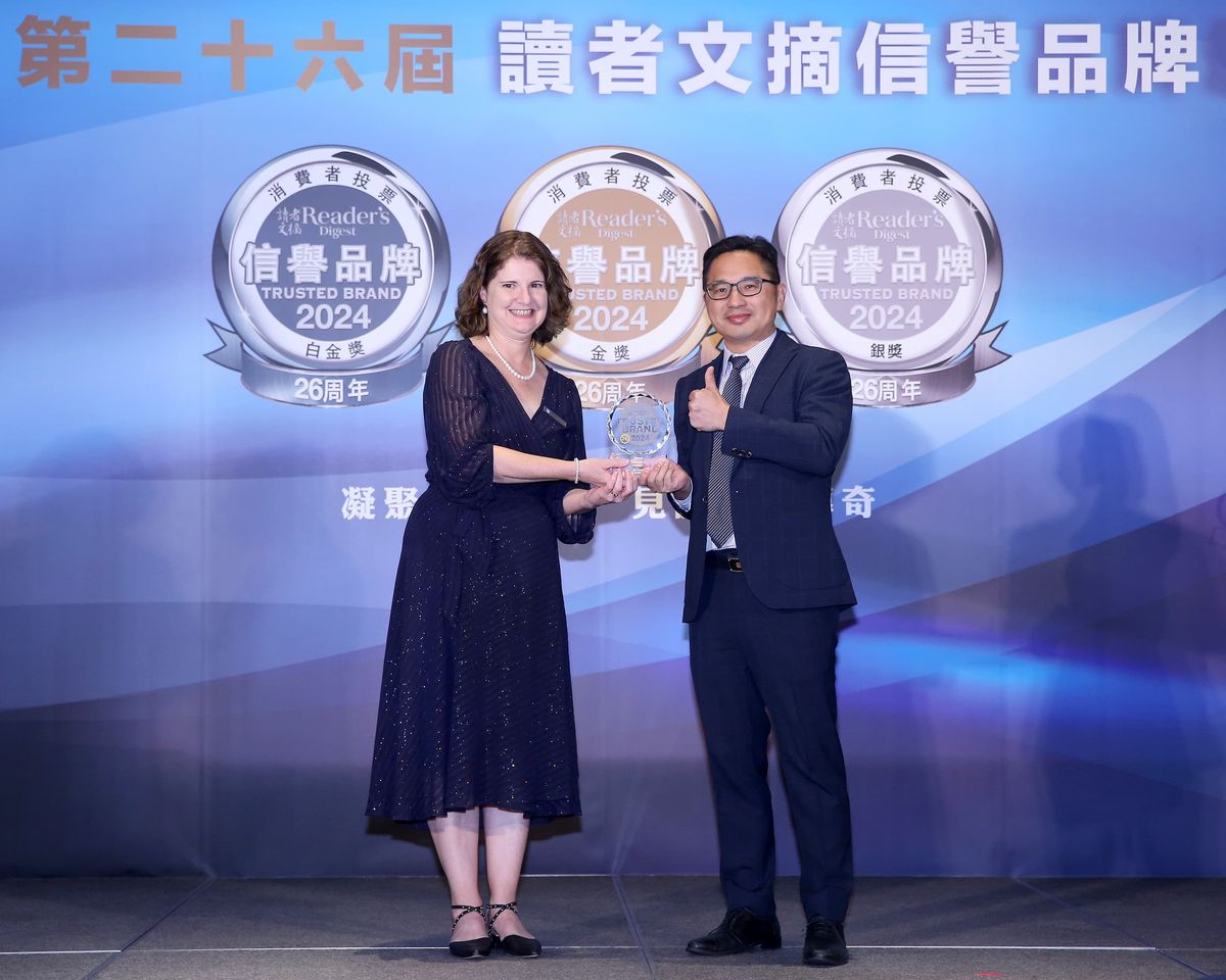 ▲CHIMEI奇美家電行銷長邱國雄(右)獲讀者文摘亞太區總編輯Ms.Louise Waterson(左)頒發獎項。