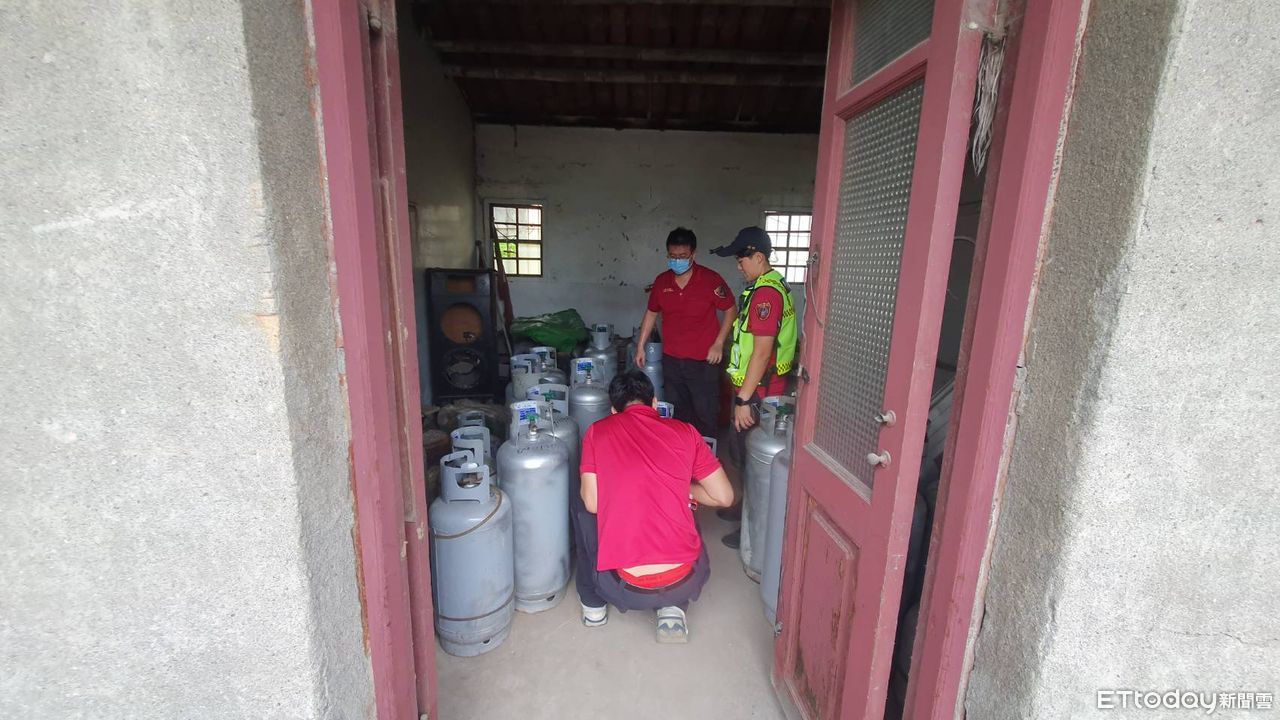 ▲新園消防分隊查獲逾期瓦斯鋼瓶 。(圖/記者陳崑福翻攝)