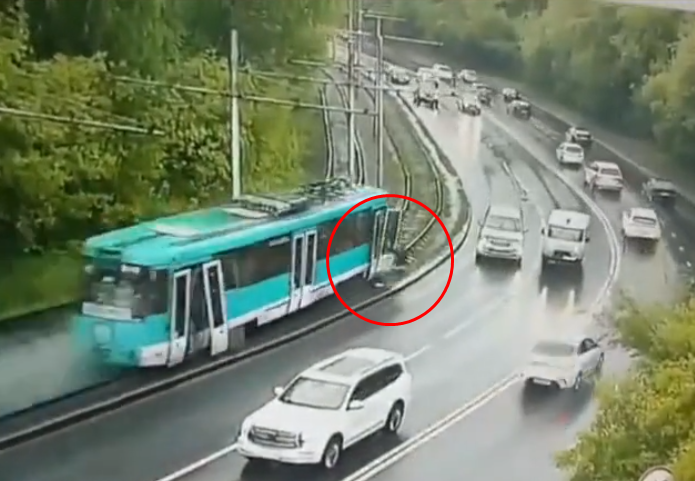 RT報導,發生事故的輕軌電車當時滿載乘客,疑似出現煞車失靈的情況,且在行經轉彎處的當下,電車車門並未完全緊閉,造成車廂內2名乘客被高速甩出,接著落在繁忙車道上,多輛汽車駕駛見狀趕緊減速並把車子停下來。整個過程被道路監視器畫面拍攝下來。
