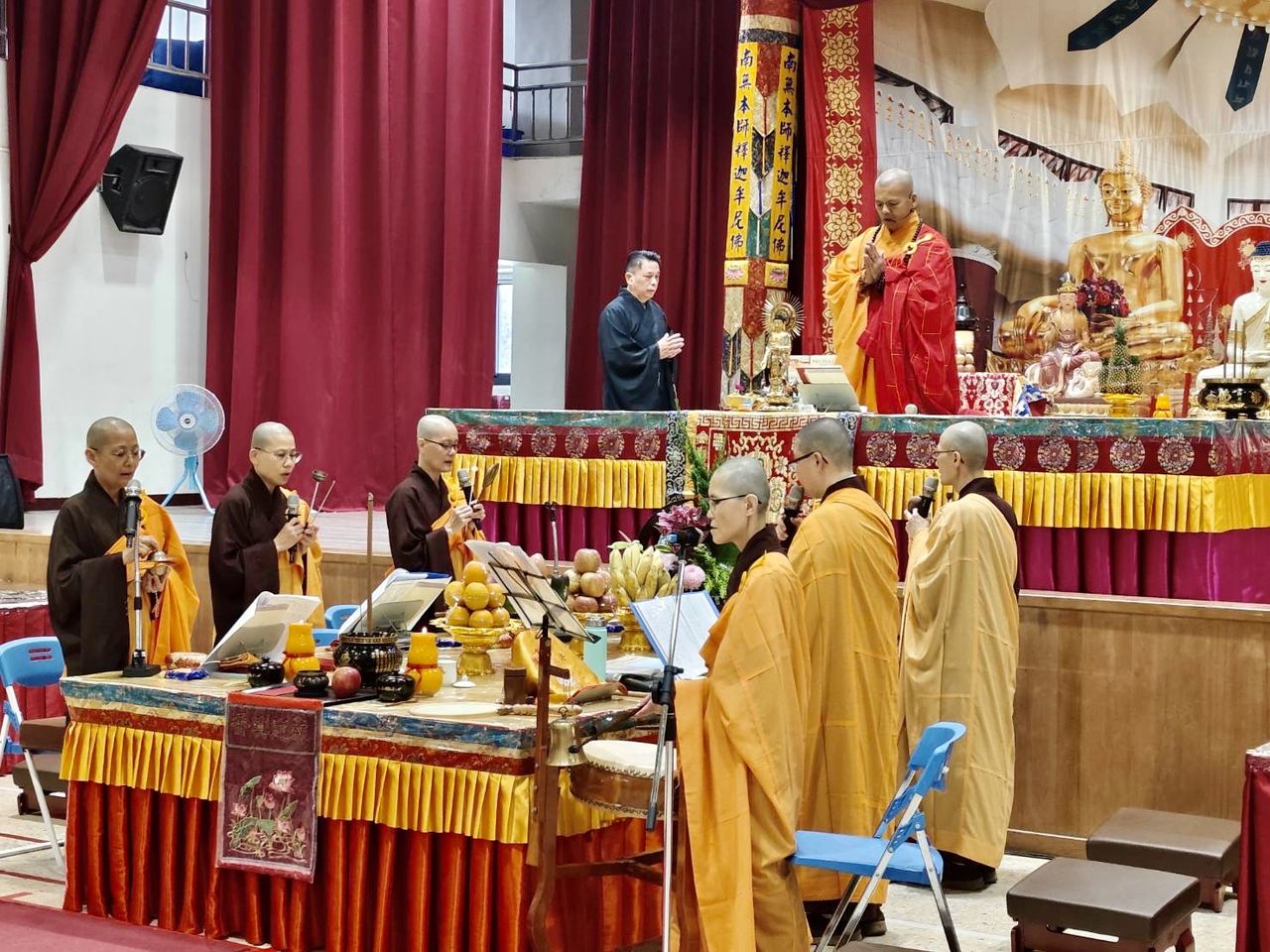 上午8點30分開始,在法師引領下,十方善信隨喜隨力發心護念,捻香祈福祝禱普降吉祥,現場莊嚴肅穆。3個時段裡,主法大良法師恭讀儀軌開示文,阿彌陀佛身金色,四十八願度眾生,三時繫念佛事心心即佛,時時觀想佛陀,至心發願懺悔,行願既深,功無虛棄,恭聆妙法一心受度。
