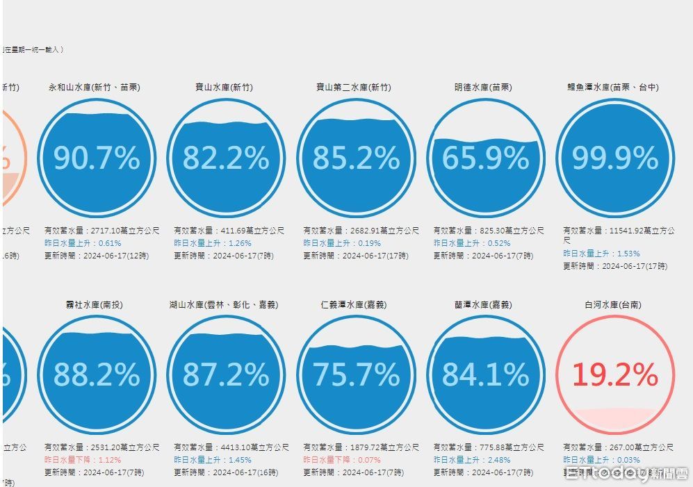 鍾清源表示,所幸自4月24日及25日集水區降下約130mm及時雨,水位開始明顯往上升,再經5、6月份幾波梅雨助攻,並感謝上游的台電公司士林堰積極發電引水挹注下,水位持續上升中,終於等到今天傍晚5時、距離去年10月11日睽違250天後,有效蓄水量來到11541.92萬立方公尺、蓄水率99.9%,再現滿庫後 自然溢流美景。他說,經統計歷史資料,除百年大旱、109年水庫未滿庫溢流外,每年都會滿庫溢流。